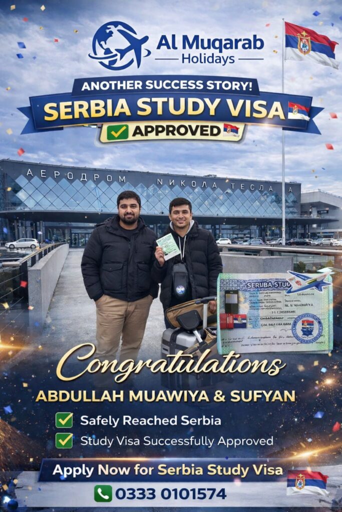 Al Muqarab Holidays stands as Pakistan’s leading travel agency, your one-stop solution for all your travel needs. We specialize in crafting unforgettable group tours, providing expert visa processing for numerous countries, and ensuring seamless hotel bookings and flight ticket arrangements.